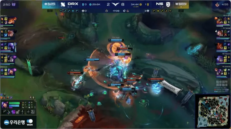 17分钟,妮蔻绕后开团,DRX打出0换2