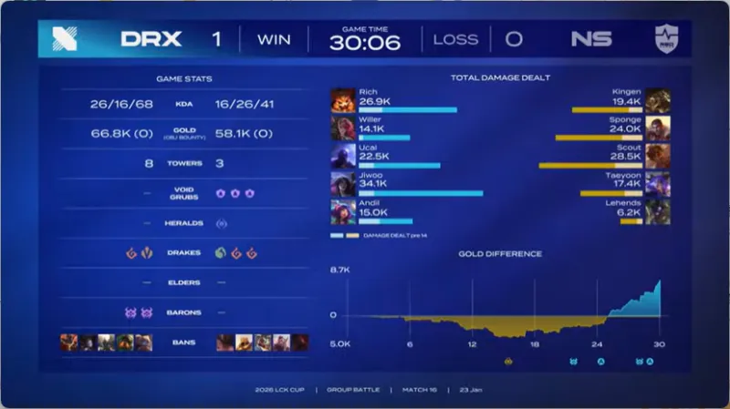DRX 1-0 NS:卡莎瑞兹团战一往无前,DRX首局先下一城